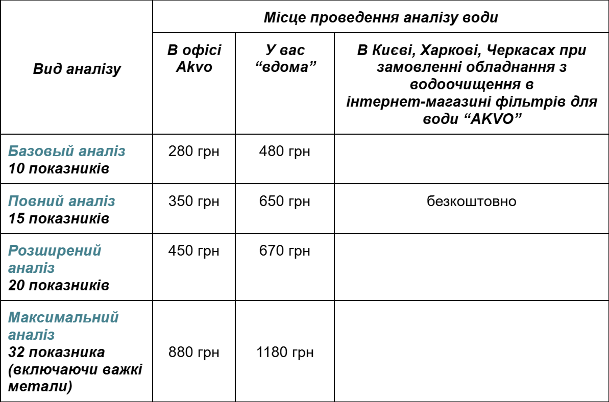 - при покупці фільтру або картриджів ви можете передати воду на лабораторний аналіз тоді, коли до вас привезуть ваше замовлення